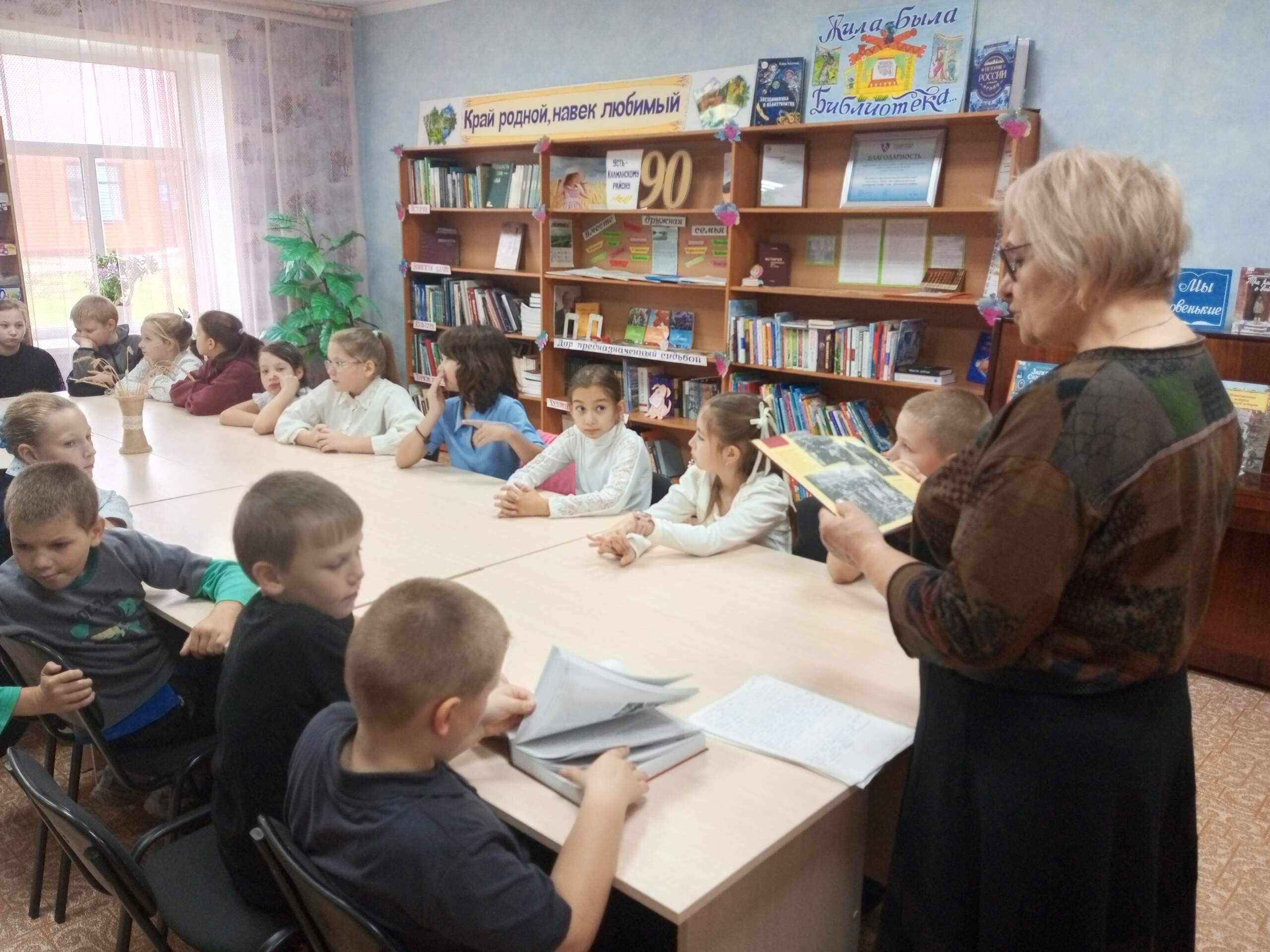 Недавно в районной детской библиотеке состоялась важная и трогательная встреча с третьеклассниками Усть-Калманской средней школы. Она была посвящена 88-летию Алтайского края и Году защитника Отечества. Вместе с ребятами вспомнили славные страницы истории и поговорили о подвигах, которые нельзя забывать: О 300 Героях Советского Союза – наших земляках, о которых рассказывает книга «Звезды доблести ратной». О легендарном летчике Павле Плотникове, дважды удостоенном звания Героя Советского Союза. О Михаиле Калашникове, чьё имя знает весь мир, а мы гордимся, что он наш земляк! О Якове Савченко, который в Бийске создавал ракетный щит страны. Особенно пронзительной стала часть встречи, где читали вслух рассказы из книги «Парни как все» о современных героях СВО – Андрее Кеслере и самом юном герое России Илье Каркавине. Память жива, пока мы помним и читаем. Все эти и многие другие книги о подвиге ждут юных читателей в детской библиотеке! Огромная благодарность юным гостям за их внимательные глаза и честные вопросы. Такие встречи – лучший способ сохранить память.