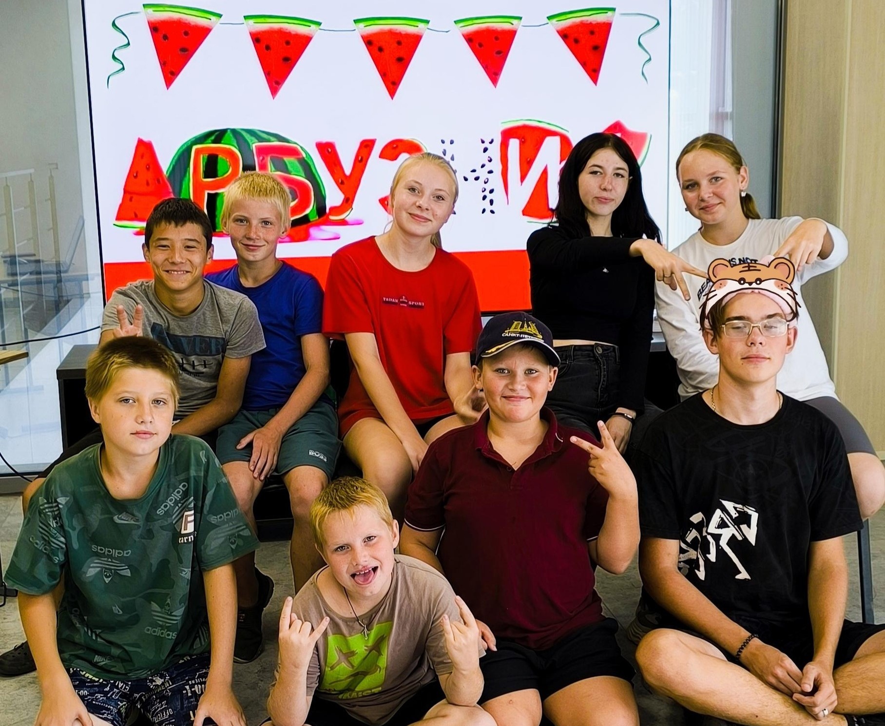 Веселое мероприятие в честь Дня арбуза прошло сегодня в РДК. На "Арбузнике" можно было узнать много интересных фактов об арбузах, принять участие в интеллектуальной викторине и посостязаться в арбузных эстафетах. Две веселые команды "Косточки" и "Кабачки" делали арбузу комплименты и рисовали самый красивый арбуз. Ребята узнали, что "одной рукой два арбуза не взять" и "чем больше у арбуза частей, тем больше добрых друзей". Особенно милым и смешным получился конкурс, где нужно было показать человека, который объелся арбузов.